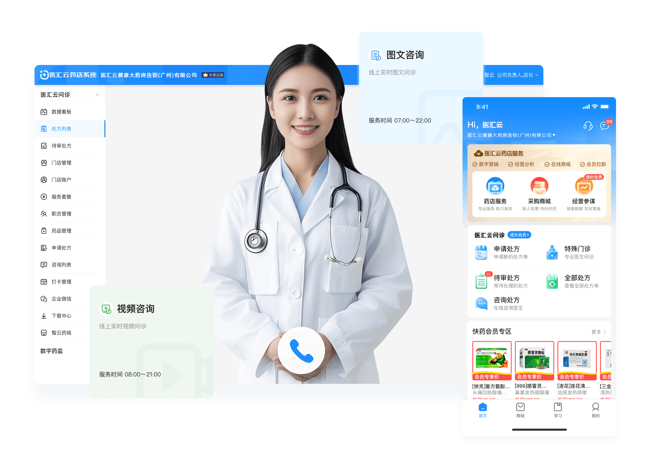 Yihui Cloud Consultation is a SaaS platform specifically designed for pharmacies. With the help of Yihui Cloud Internet doctors, pharmacies can issue prescription drugs for drug buyers quickly and in compliance with regulations through Yihui Cloud consultation, achieve safe, high-quality and efficient prescription flow management, and build a perfect service bridge between drug buyers and pharmacies